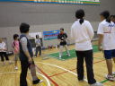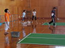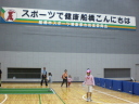 バウンドテニスは体育館でコート4面を設置し、一般初心者に体験してもらいニュースポーツの楽しさや入会の宣伝を行いました。